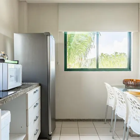 Apt Marulhos-Beiramar Praia De Muro Alto-058M villa comes with a fridge, an oven, and kitchenware in a fully furnished kitchen for cooking.
